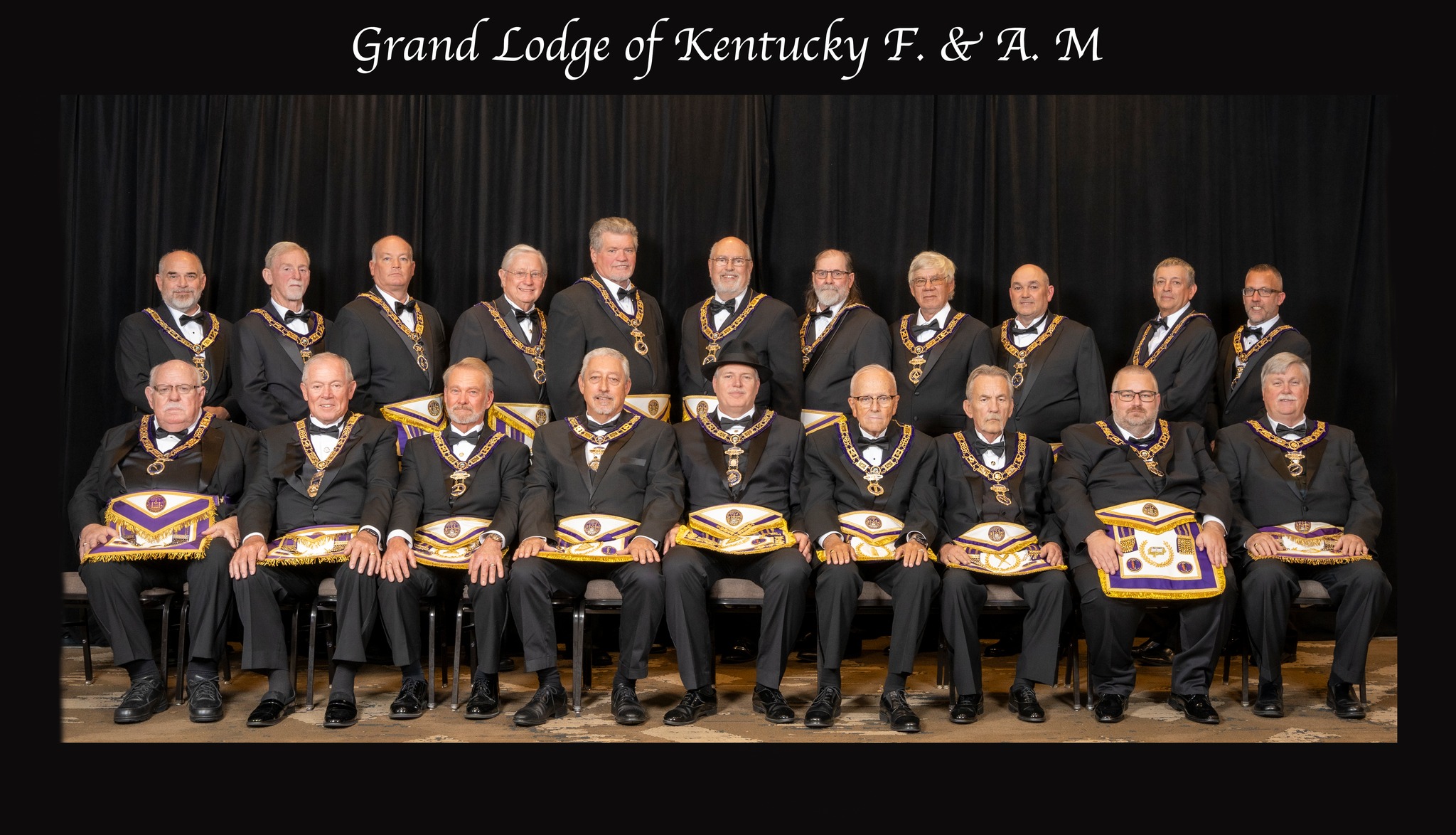 Front row left to right: Bobby L. Baker, (124), Asst. Grand Secretary, F. Keith Dreier, PGM, (163, 999), Grand Treasurer, Douglas W. Bunch, (73, 503, 995, 997), Grand Senior Warden, Terry W. Boggess, (121,997,995,276), Deputy Grand Master, Luke Martin, (955, 180, 997), Grand Master, Robert C. Griggs, Jr., (437, 997), Grand Junior Warden, Donald H. Yankey, PGM, (586, 633), Grand Secretary, Joseph M. Young, (108), Grand Chaplain, Stephen W. Russell, (124), Asst. Grand Secretary